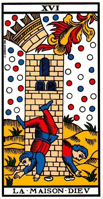La Maison-Dieu représente une construction, des croyances, des certitudes aux fondations peu solides. Un changement brutal arrive et détruit vos repères, laissant l'horizon nu, ouvert à de nouvelles perspectives et à la reconstruction. La perte de repères est intense et perturbante, mais vous permet d'avoir de nouveau une vue dégagée et claire.