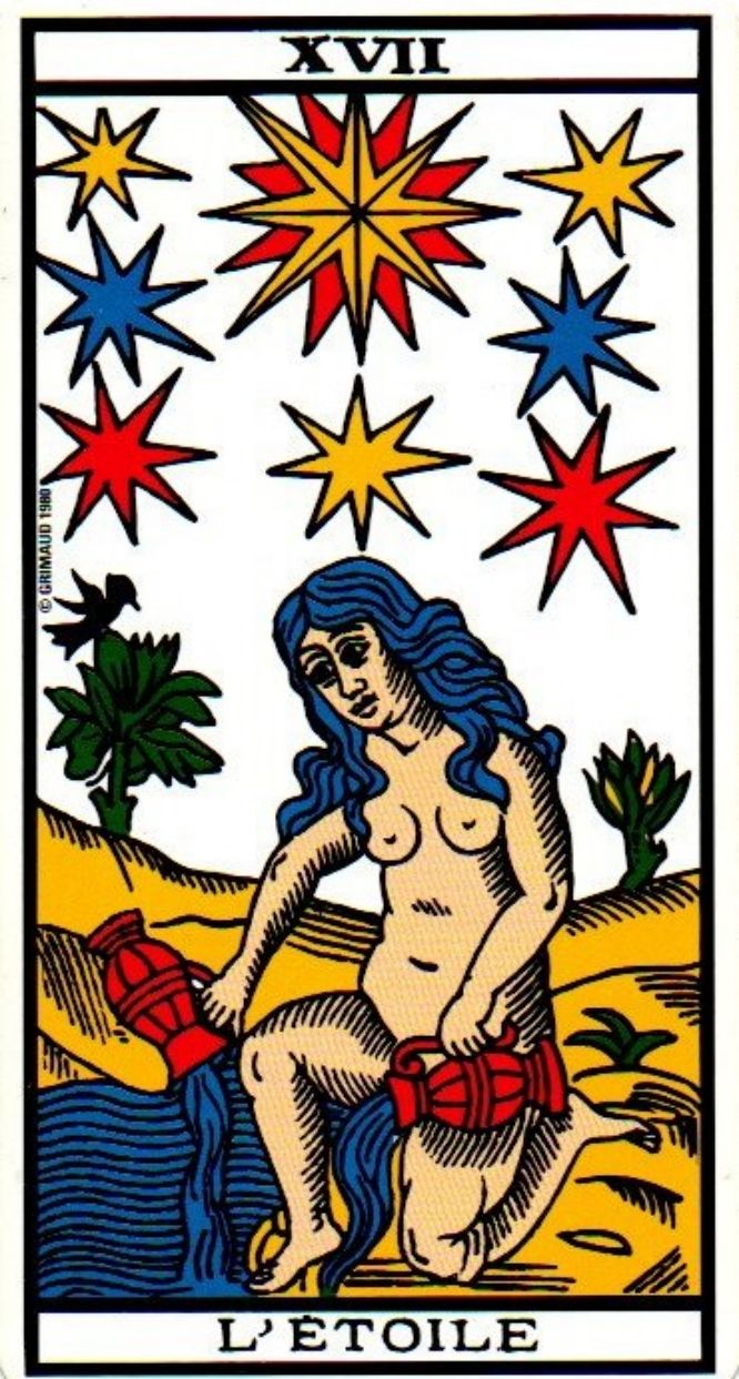 XVII – L'étoileCarte de l'espoir, du rêve et de la confiance. L'étoile vous invite à faire jaillir votre lumière intérieure afin de la partager au monde. Elle vous encourage à croire en votre bonne étoile et en votre vision de l'avenir.